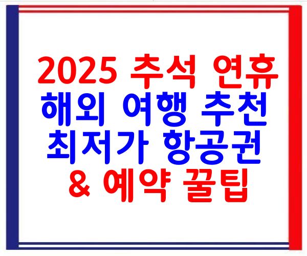 2025년 추석 연휴는 최대 7~10일의 긴 연휴. 이번 글에서는 비용 대비 만족도 높은 5개 해외 여행지와 실시간 최저가 항공권 링크, 예약 꿀팁을 제공합니다.